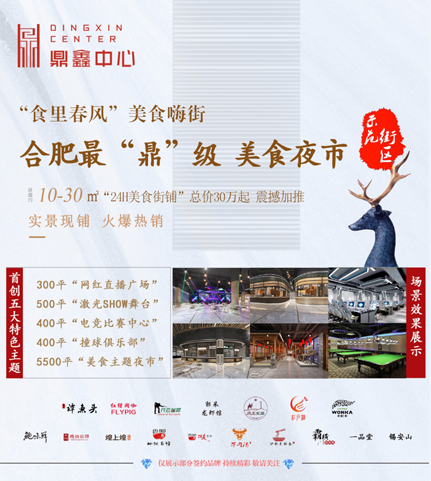 鼎鑫中心“食里春風(fēng)美食嗨街”是鼎鑫集團(tuán)布局合肥主城中央,重資打造的安徽首個(gè)公園主題 “美食夜市”,總規(guī)模6300平米,斥資1500萬元,打造合肥最“鼎”級(jí)美食夜市。