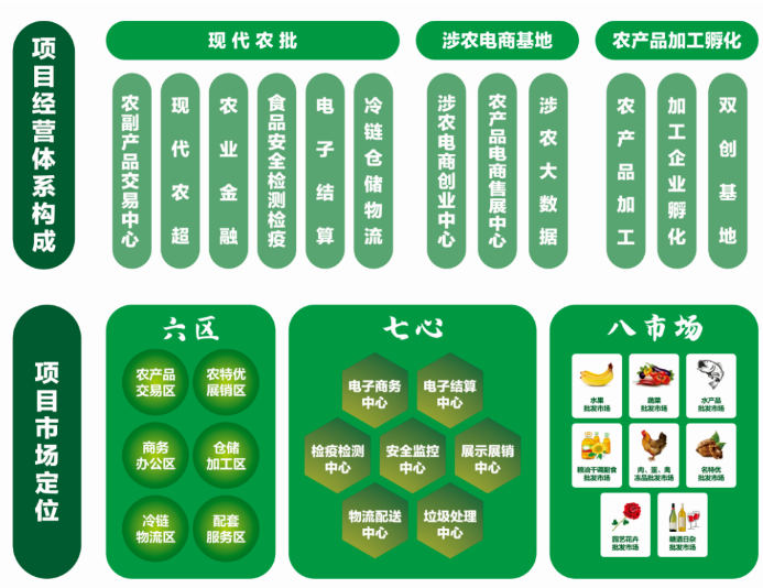 孝義農(nóng)產(chǎn)品大市場(chǎng)位于城市主干道永安路與崇賢街交匯處,項(xiàng)目總投資10億元,占地面積約220畝,總建筑面積約17萬(wàn)㎡,涵蓋了農(nóng)產(chǎn)品交易區(qū)、農(nóng)特優(yōu)展銷區(qū)、商務(wù)辦公區(qū)、倉(cāng)儲(chǔ)加工區(qū)、冷鏈物流區(qū)、配套服務(wù)區(qū)六大功能區(qū)。項(xiàng)目建成后,將成為集農(nóng)產(chǎn)品展覽交易、電子商務(wù)、電子結(jié)算、加工配送、凈菜加工、冷鏈物流、質(zhì)量檢測(cè)、信息發(fā)布、創(chuàng)業(yè)孵化、金融服務(wù)、休閑娛樂(lè)等功能為一體的現(xiàn)代化大型綜合服務(wù)平臺(tái)。